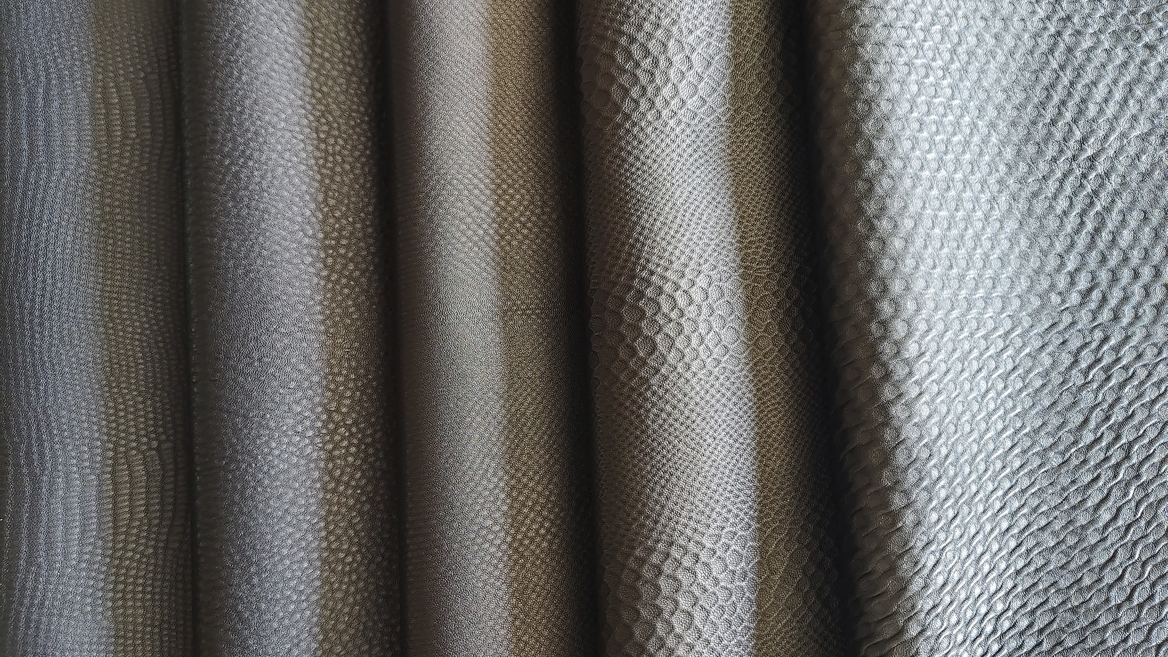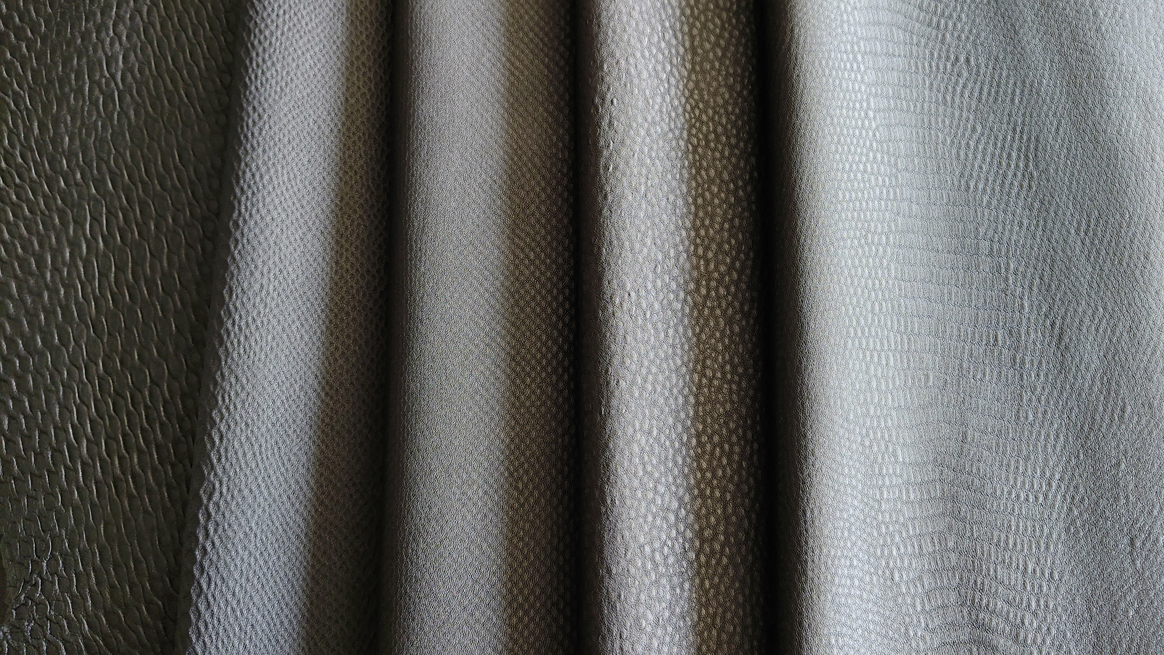 This product is made by compounding sheepskin through special processes multiple times, with a variety of patterns available in multiple shapes, including stripes, dots, animal patterns, and other three-dimensional patterns. It has a clear concave convex feeling when touched by hand, with a thickness of about 0.6mm and a crisp feel. It is suitable for making various clothing and matching leather.